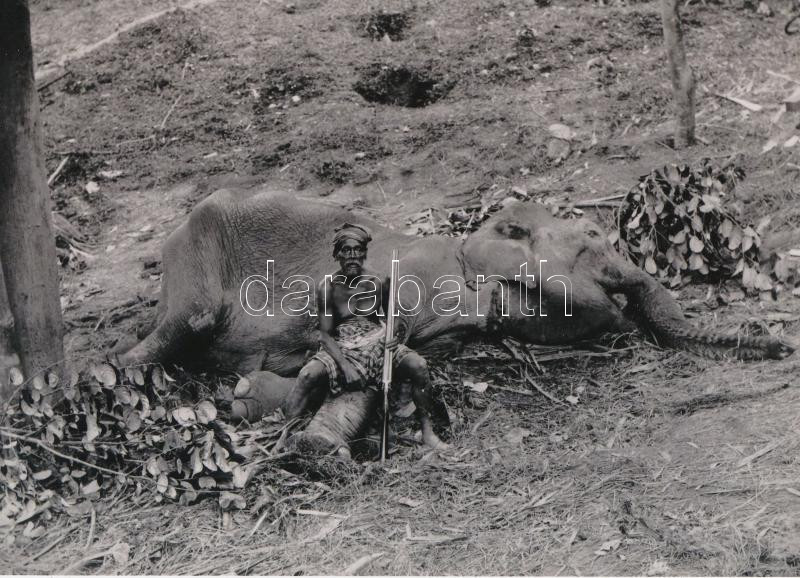 Beschreibung: cca 1926 Elefántvadász, a néhai Képes Vasárnap (1925-1944) című lap hírügynökségi fotóinak archívumából 1 db modern nagyítás jelzés nélkül, 15x21 cm