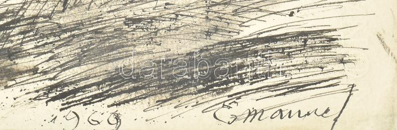 Beschreibung: Emanuel Béla (1879-1976): Lourdes, 1969. Tus, papír, jelezve jobbra lent. Proveniencia: a művész hagyatéka. Papírra kasírozva. 32,5×50 cm.