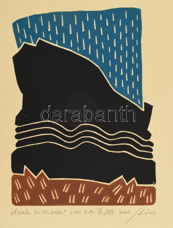Kiss Ilona (1955-): "Égről és földről", 2002. Linómetszet, p... https://www.darabanth.com/de/471-Fernauktion/471.0/Gemalde-und-Grafiken/Gemalde-und-Grafiken~500001/Kiss-Ilona-1955-Egrol-es-foldrol-2002-Linometszet-papir-jelzett-Muveszpeldany-~II3144348