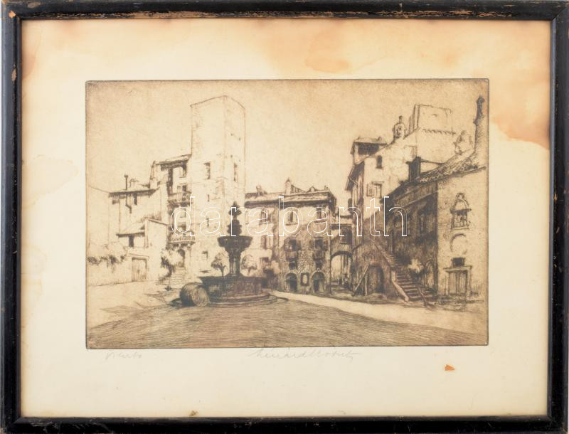 Beschreibung: Lénárd Lévy Róbert (1879-1936): Viterbo. Rézkarc, papír. Jelzett. Foltos. 19,5x29,5 cm. Üvegezett fakeretben.