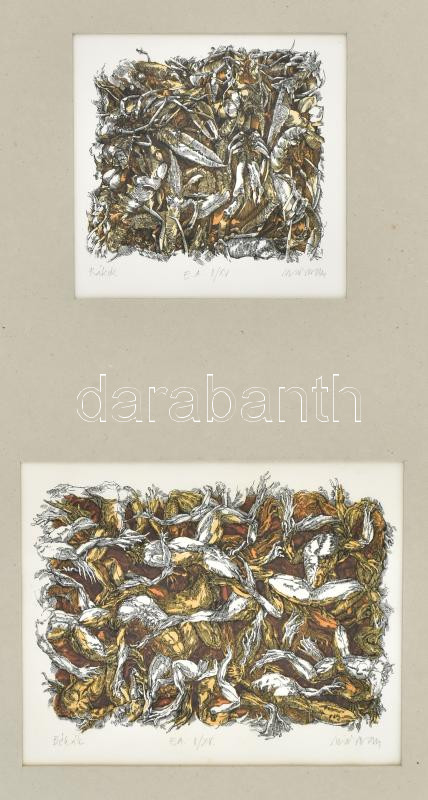 Makovecz Benjamin (1957-), 2 db mű: Rákok, békák. Fametszet, papír, jelzett, mindkettő művészpéldány E.A. II/XV számozással. Egy paszpartuban. 13×15 és 17x23 cm.