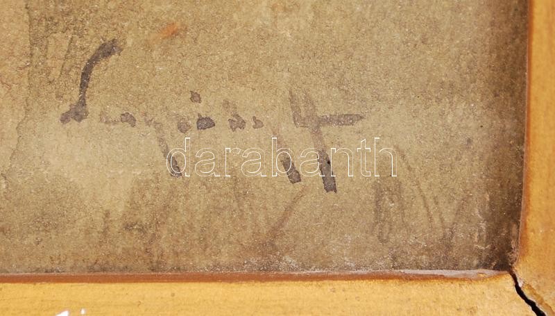 Beschreibung: Neogrády Antal (1861-1942): Falu határ. Akvarell, papír, jelzett, üvegezett sérült keretben 44×54 cm
