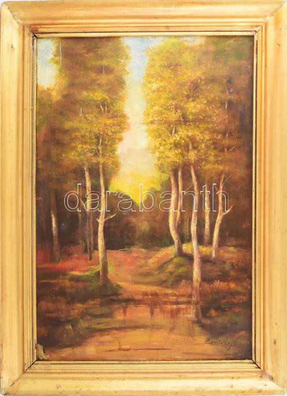 Beschreibung: Csontváry jelzéssel: Erdő. Olaj, falemez. Dekoratív, sérült fakeretben. 58,5x41 cm
