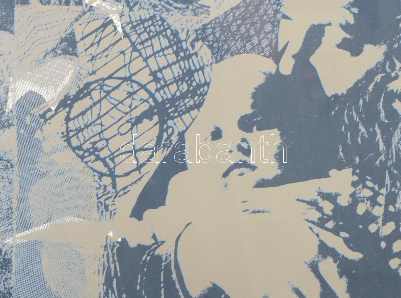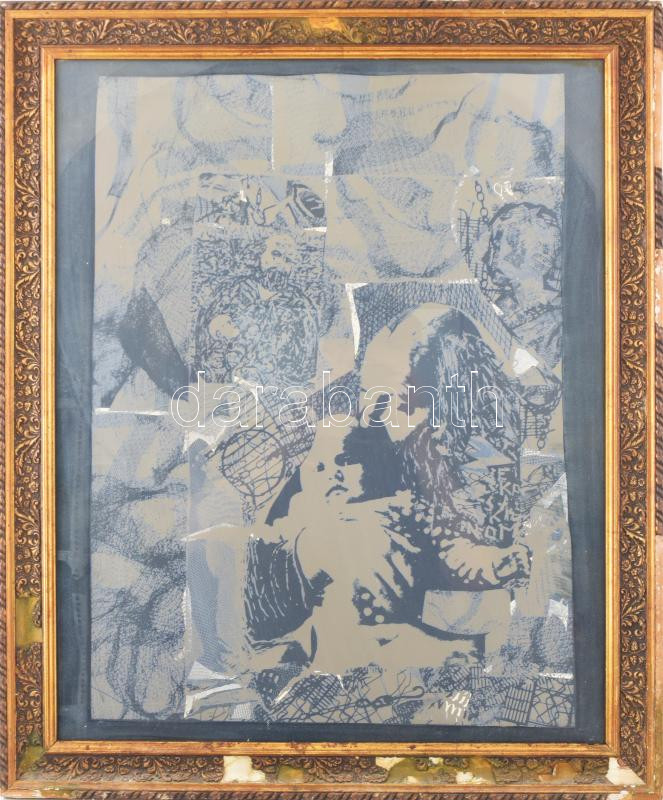 Olvashatatlan jelzéssel: Olvashatatlan címmel. Szitanyomat, papír, magyar ny. ajánlásal, 58x42,5 cm. Dekoratív, sérült, üvegezett fakeretben.