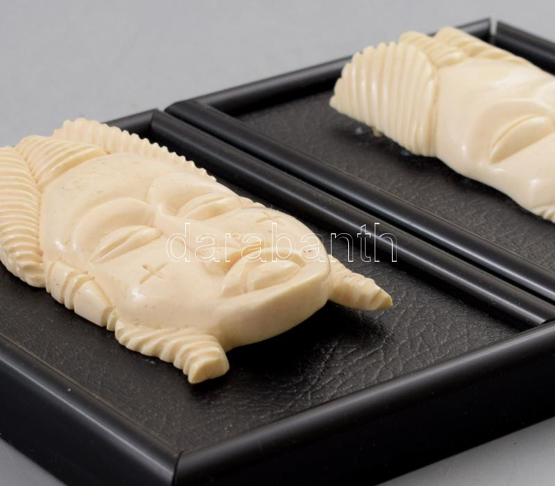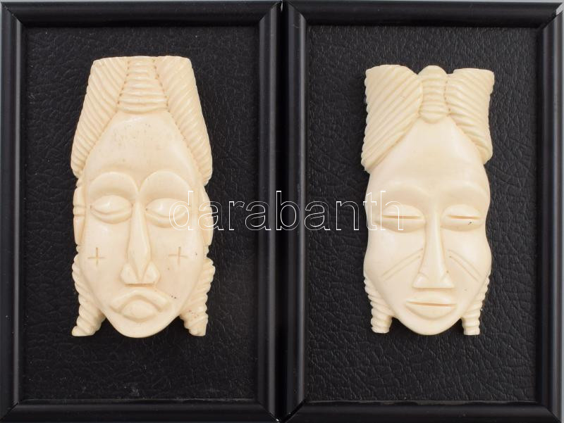 2 darab afrikai faragott csont maszk, m: 10 cm, keretre applikálva. https://www.darabanth.com/de/471-Fernauktion/471.0/Kunst-Dokumente-andere-Sammelgebiete/Antik~2000108/2-darab-afrikai-faragott-csont-maszk-m-10-cm-keretre-applikalva~II3169354