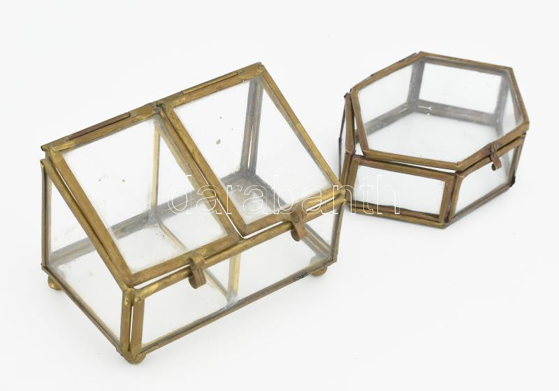 Beschreibung: 2 db réz tároló vitrin 8, 9 cm, XIX.sz.