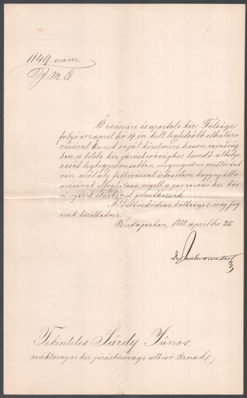 1880 Pauler Tivadar (1816-1886) igazságügy-miniszter által aláírt okir... https://www.darabanth.com/de/471-Fernauktion/471.0/Kunst-Dokumente-andere-Sammelgebiete/Dokument~2000107/1880-Pauler-Tivadar-1816-1886-igazsagugy-miniszter-altal-alairt-okirat-fejleces-miniszteri-~II3162534