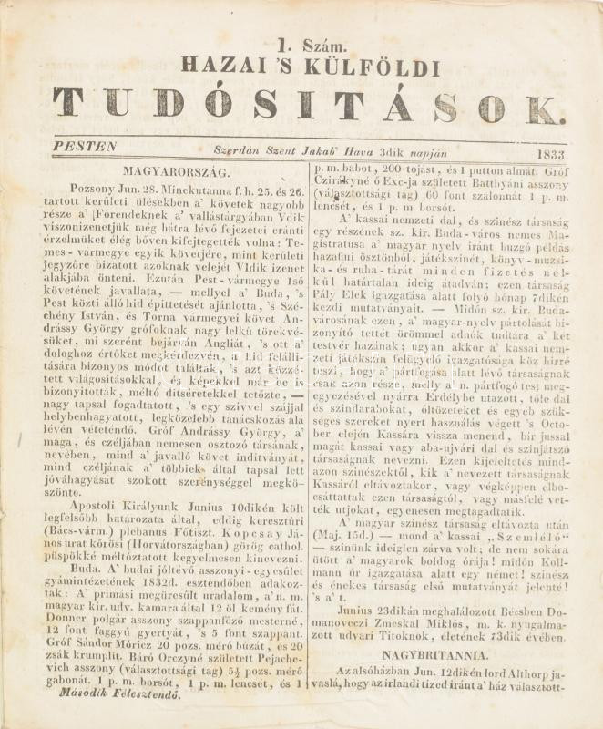 1833 Hazai 's Külföldi Tudósítások 1-52 eredeti száma egybekötve,... https://www.darabanth.com/de/471-Fernauktion/471.0/Kunst-Dokumente-andere-Sammelgebiete/Drucksachen~1000015/1833-Hazai-s-Kulfoldi-Tudositasok-1-52-eredeti-szama-egybekotve-416p-serult-papirkote~II3188748