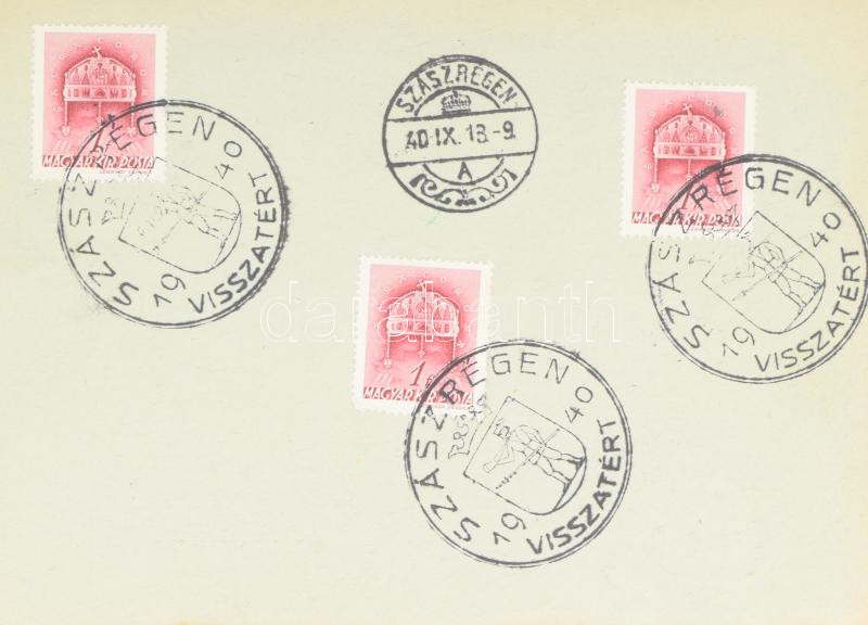 1940 8 db Erdélyi visszatért bélyegzéses levelezőlap https://www.darabanth.com/de/471-Fernauktion/471.0/Kunst-Dokumente-andere-Sammelgebiete/Drucksachen~1000015/1940-8-db-Erdelyi-visszatert-belyegzeses-levelezolap~II3192774