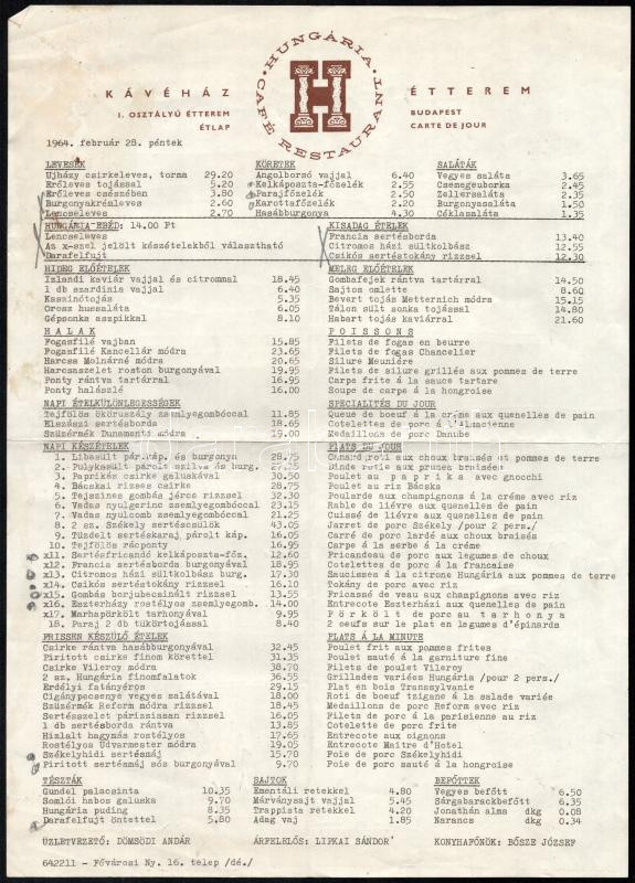 1964 Bp., Hungária Café-Restaurant I. oszt. étterem étlapja, hátoldalá... https://www.darabanth.com/de/471-Fernauktion/471.0/Kunst-Dokumente-andere-Sammelgebiete/Drucksachen~1000015/1964-Bp-Hungaria-Cafe-Restaurant-I-oszt-etterem-etlapja-hatoldalan-ceruzas-rajzokkalva~II3137787
