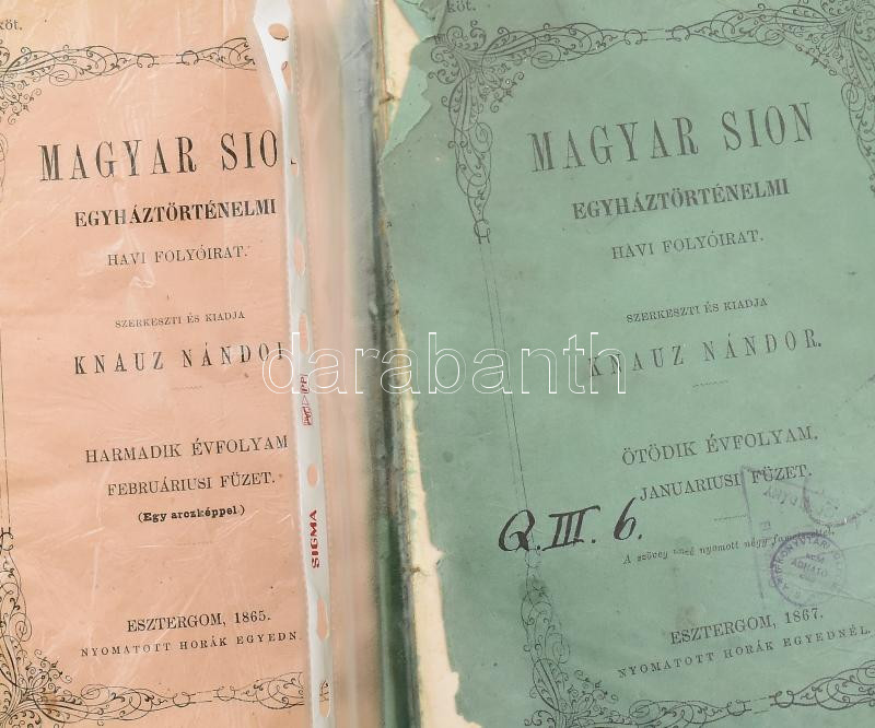 Magyar Sion. Egyháztörténelmi folyóirat.szórványszámok, harmadik évfolyam 2., 4., 5. Ötödik évfolyam: 1., 2., 4., 6-12.füzetek