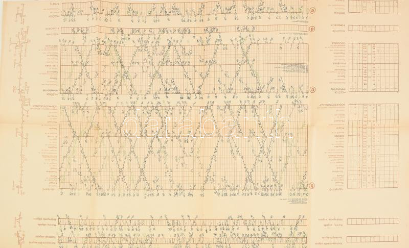 Beschreibung: Vasúti elágazások grafikus táblázata, hajtva, minimális sérülésekkel, 81x51 cm