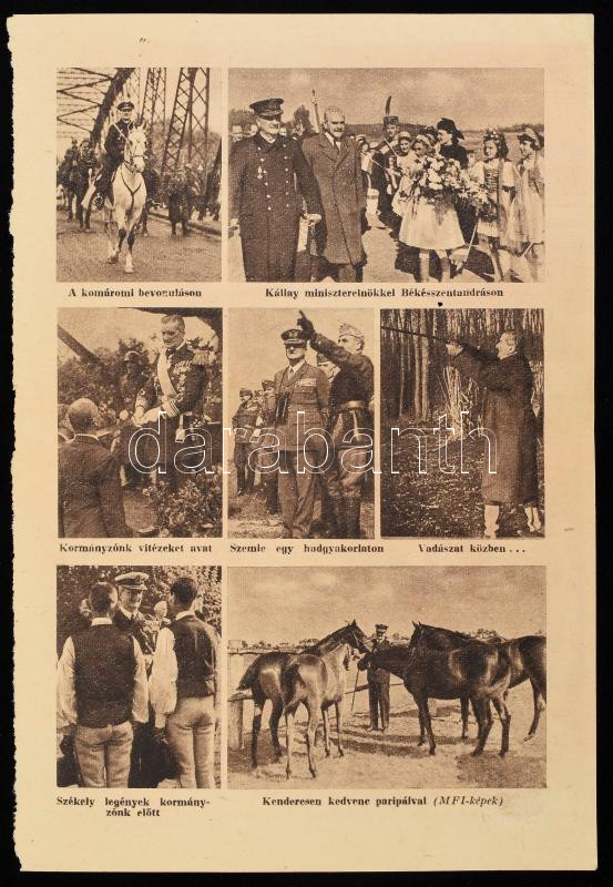 Beschreibung: cca 1938 Ezeréves nemzet. Hamvas József hazafias verse. Hajtásnyomokkal + hozzá Horthy Miklóst ábrázoló újságkivágások.