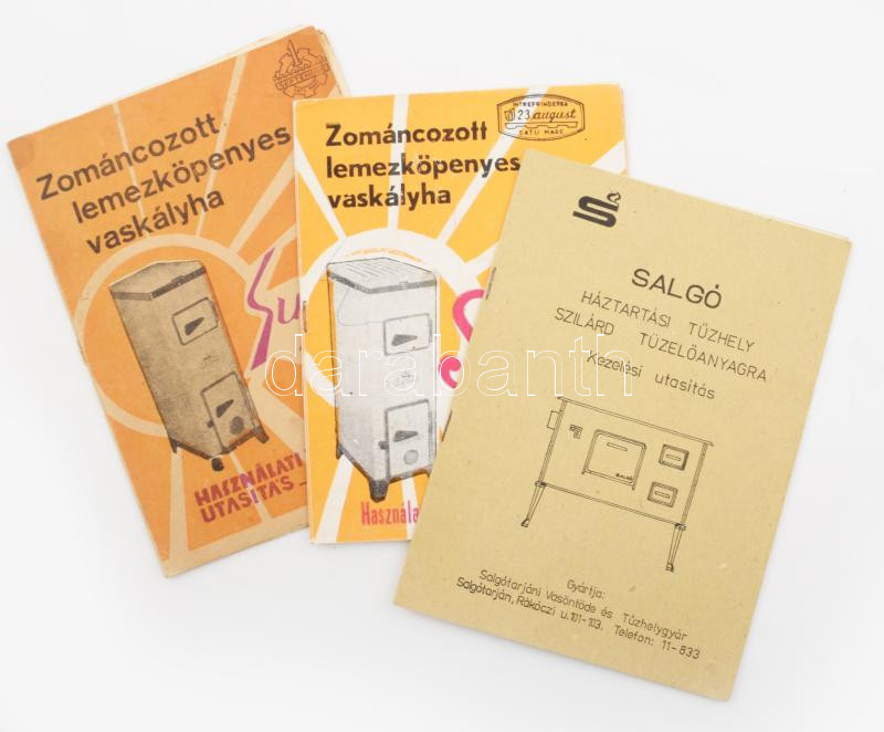 cca 1970-1980 3 db kályha használati utasítás: Super 2 zománcozott lemezköpenyes vaskályha (2 klf.) + Salgó háztartási tűzhely. Változó állapotban, az egyik sérült, foltos.