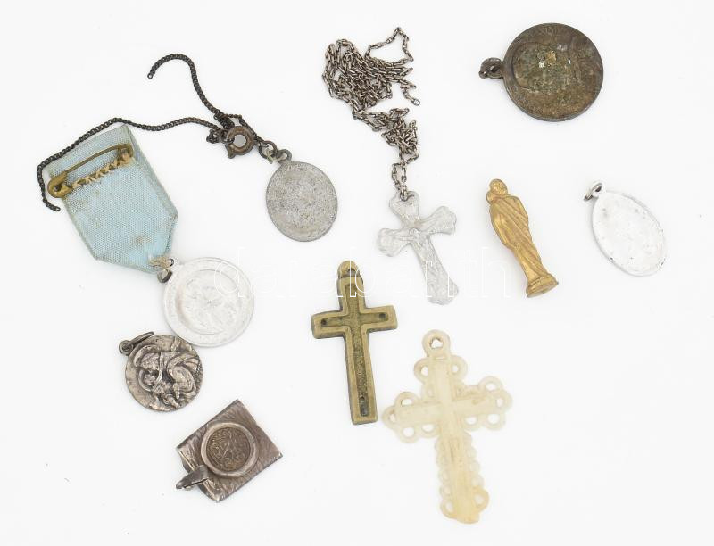 Beschreibung: 10 db vallási medál, kegytárgy, vegyes állapotban