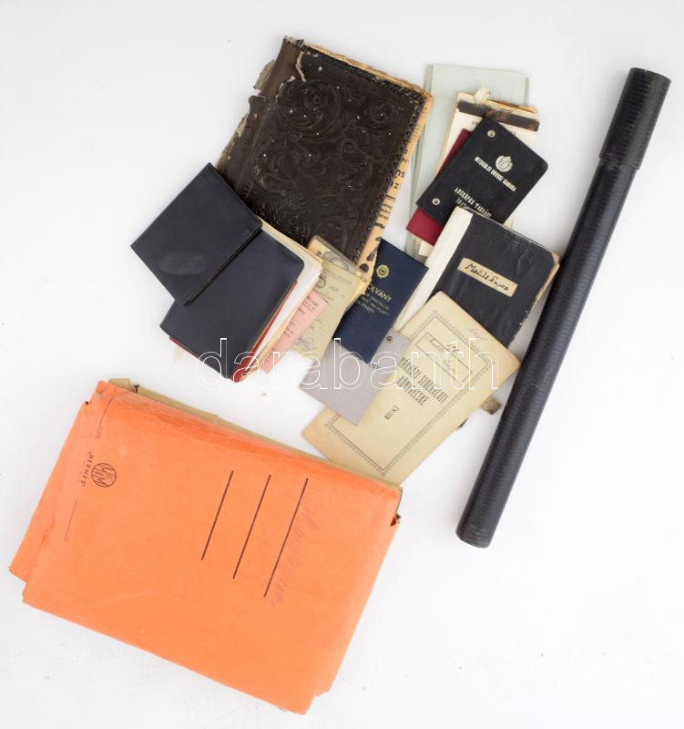 1902 - 1972 Matits Lajos (1902-1972) a Kékes-Szálló magaslati gyógyintézet főorvosa irat és okmány hagyatéka, benne Budapest Magyar Tudomány-egyetemi orvosi kari leckekönyve (1920-1926, orvosi diplomája (1927), Kórházi Szolgálati Könyvecskéje (1926-1927), Miskolci Orvosi Kamara tagsági igazolványa (1938-1944), Magyar Orvosok Szabad Szakszervezetének tagsági igazolványa (1947-1949), valamint halálozási értesítője és halotti anyakönyvi kivonata, 2 db fejléces vénykönyvecskéje, hiányokkal, néhány neki szóló levél, köztük a "Kékes Szálló" fejléces papírjai és borítékjai. Valamint további igazolványok, bizonyítványok, szerződések, származási papírok, de ezek között már sok modern fénymásolat is, továbbá összegyűjtött különféle cikkek, írások.
