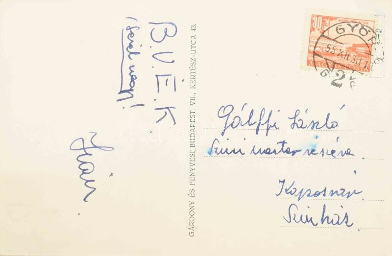 1955 Gálfy László (1928- 2003) Jászai Mari-díjas színész, színházigazgató küldött képeslap, beazonosítandó aláírással