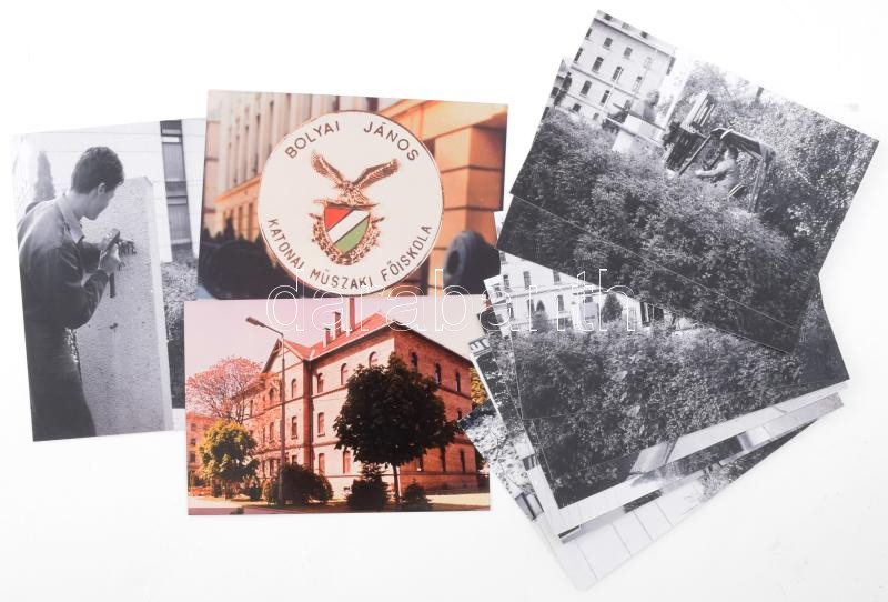 Beschreibung: 1991 Bp., Bolyai János (előtte Zalka Máté) Katonai Műszaki Főiskola, Zalka Máté szobrának eltávolítása, 11 db fotó (közte két színes), 15x10 cm