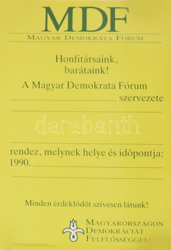 1990 "Legyen meg a te akaratod" Magyar Demokrata Fórum (MDF)... https://www.darabanth.com/de/471-Fernauktion/471.0/Kunst-Dokumente-andere-Sammelgebiete/Plakat~1000016/1990-Legyen-meg-a-te-akaratod-Magyar-Demokrata-Forum-MDF-valasztasi-plakat-feltekerve-35x4~II3190619