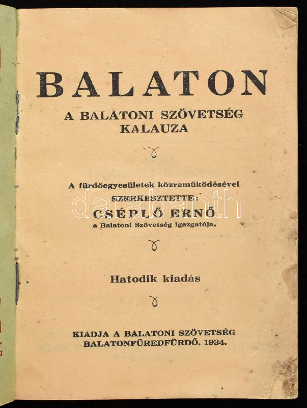 Balaton 1934. A Balatoni Szövetség Kalauza 96p. Enyhén sérült papírbor... https://www.darabanth.com/de/471-Fernauktion/471.0/Kunst-Dokumente-andere-Sammelgebiete/Schiffe-Plattensee~1000007/Balaton-1934-A-Balatoni-Szovetseg-Kalauza-96p-Enyhen-serult-papirboritoval~II3193045