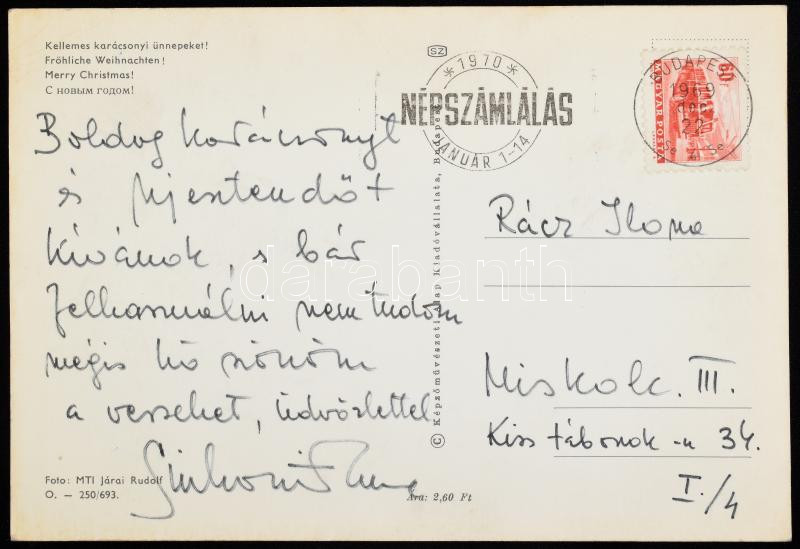 Beschreibung: Sinkovits Imre (1928-2001) színművész saját kezű képeslapja Sinkovits Imre autográf aláírásával.