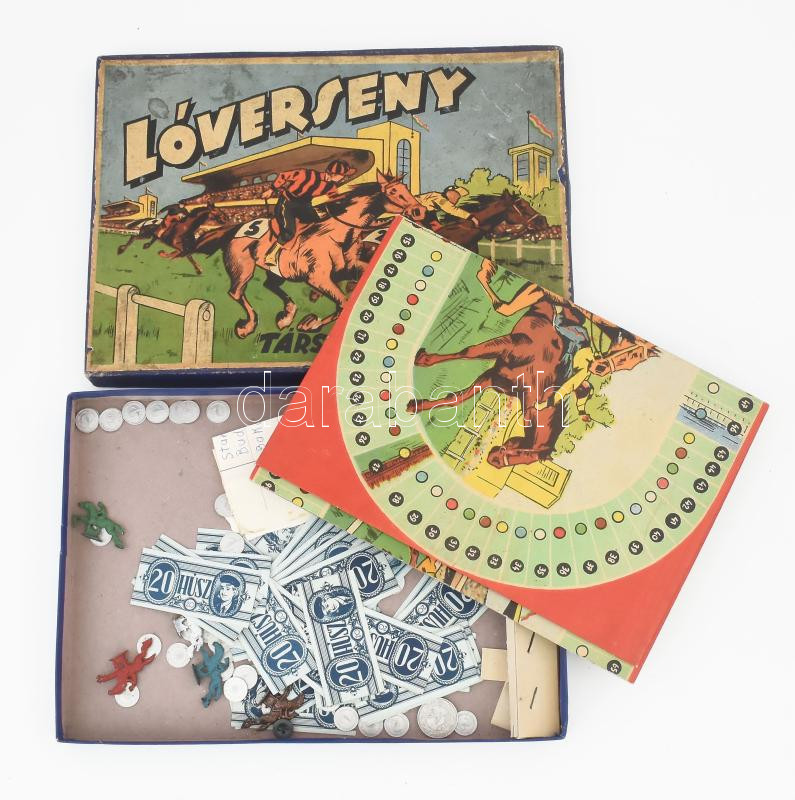 Lóverseny Társasjáték, dobozában https://www.darabanth.com/de/471-Fernauktion/471.0/Kunst-Dokumente-andere-Sammelgebiete/Spielzeuge~500015/Loverseny-Tarsasjatek-dobozaban~II3158232