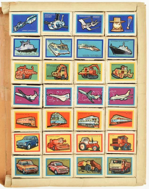 cca 1975 Szovjet díszdobozos gyufa szett, 28 db klf. járműveket ábrázo... https://www.darabanth.com/de/471-Fernauktion/471.0/Kunst-Dokumente-andere-Sammelgebiete/Streichholzer-Etikett~1000002/cca-1975-Szovjet-diszdobozos-gyufa-szett-28-db-klf-jarmuveket-abrazolo-gyufasdobozzal-a-dC3~II3135536