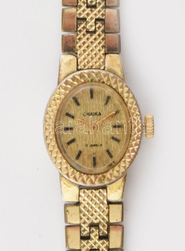 Beschreibung: Chaika 17 köves női karóra, fém szíjjal, nem működik.