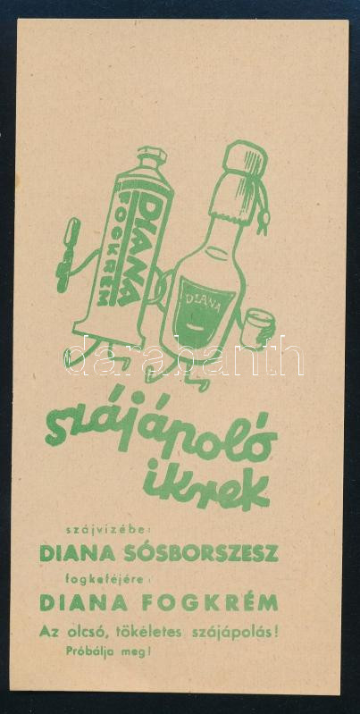 Diana Sósborszesz, fogkrém számolócédula. https://www.darabanth.com/de/471-Fernauktion/471.0/Kunst-Dokumente-andere-Sammelgebiete/Werbungen~1000006/Diana-Sosborszesz-fogkrem-szamolocedula~II3190782