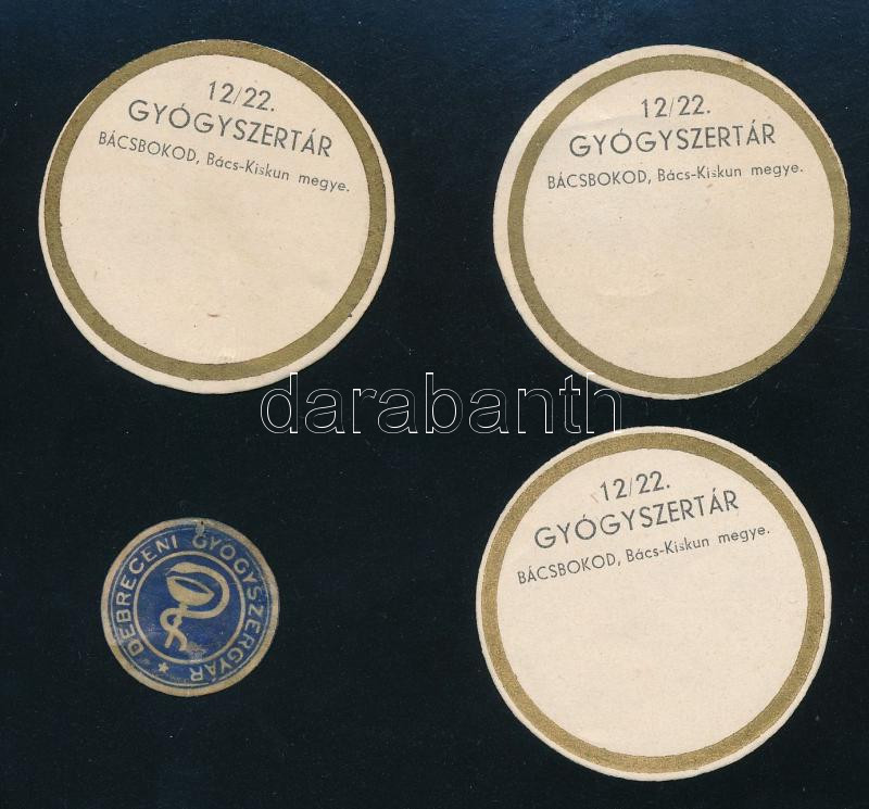Beschreibung: cca 1930 Bácsbokod, Debrecen 2 db gyógyszertári doboz címke