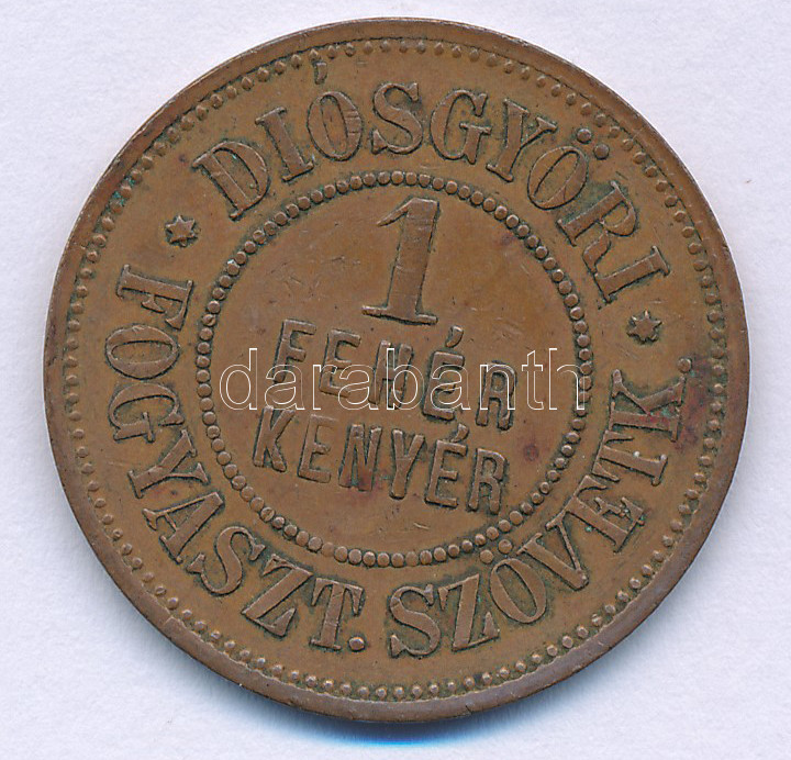 DN "Diósgyőri Fogyasztási Szövetkezet - 1 Fehér Kenyér" bronz élelmisz... https://www.darabanth.com/de/471-Fernauktion/471.0/Numismatik/Notgeld-aus-Papier-und-Metall~1500007/DN-Diosgyori-Fogyasztasi-Szovetkezet-1-Feher-Kenyer-bronz-elelmiszerbarca-T-XF-patina~II3193453