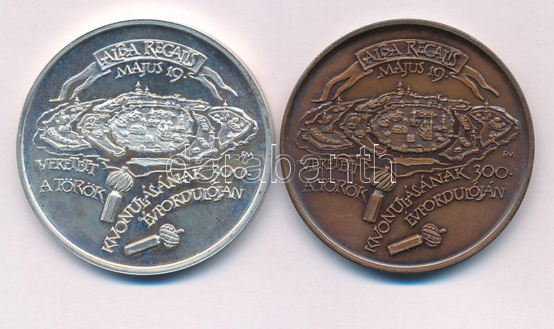 Fritz Mihály (1947-) 1988. "MÉE Székesfehérvár - Török kivonulásának 300. évfordulója" Br és Ag emlékérem pár, peremen "SZG" jelzéssel (35,34g/0.835/42,5mm) T:PP,UNC fo., ujjlenyomat