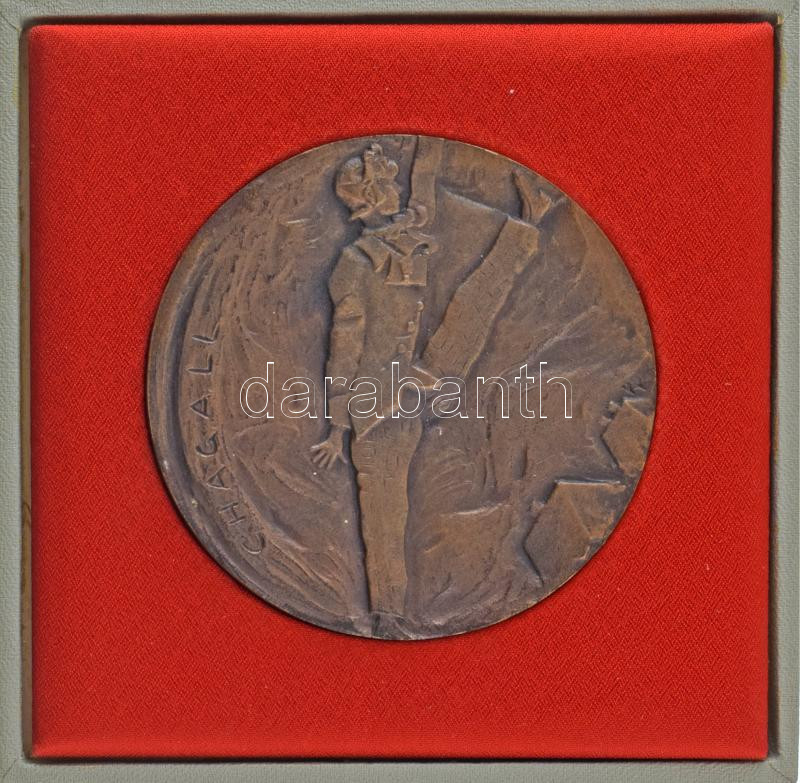 Renner Kálmán (1927-1994) ~1974. "Chagall" Előre című alkotásának ábrázolása bronzplaketten, dísztokban. A tétel részét képezi egy Keserű János agrármérnök, földművelésügyi miniszterhelyettes számára címzett - a plakettre is kitérő - levél (96mm) T:AU