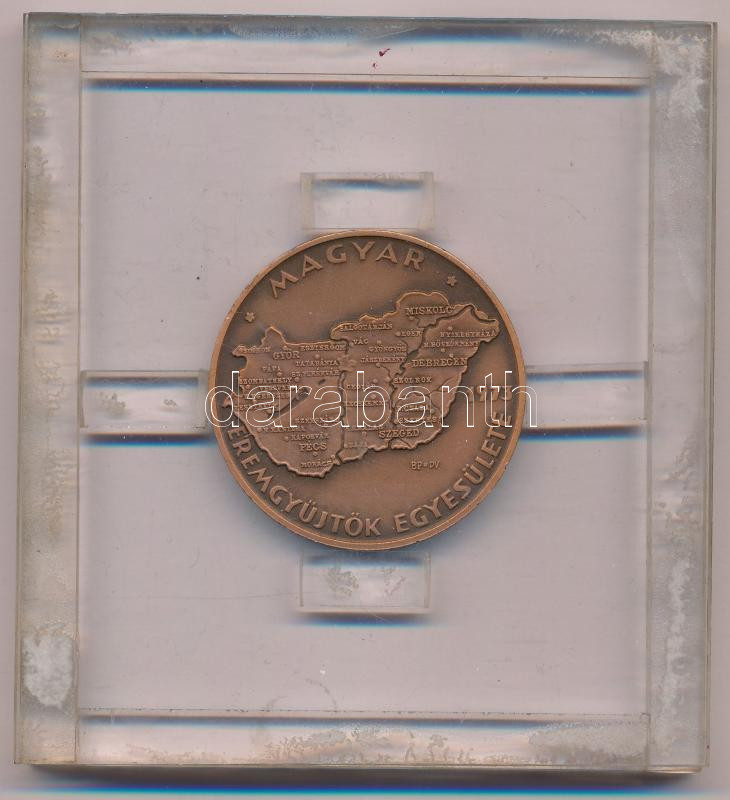 Csúcs Viktória (1934-) 1979. "Magyar Éremgyűjtők Egyesülete 1973" kétoldalas bronz tagsági érem, plexi keretben (42,5mm) T:AU Adamo BP5