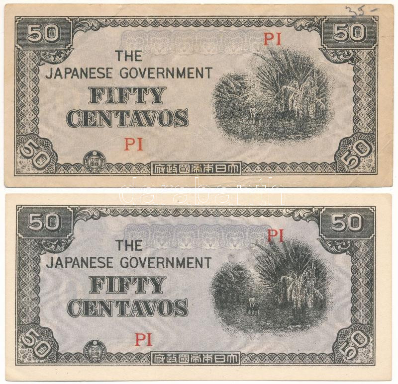 Fülöp-szigetek / Japán megszállás DN (1942) 50c (2xklf) az egyik vízjeles, a másik sima papíron T:AU-F az egyiken szakadás