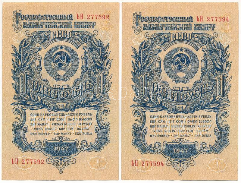 Soviet Union 1947. 1 Ruble (2x) consecutive serials with leap "277592 - 277594" C:F fine paper