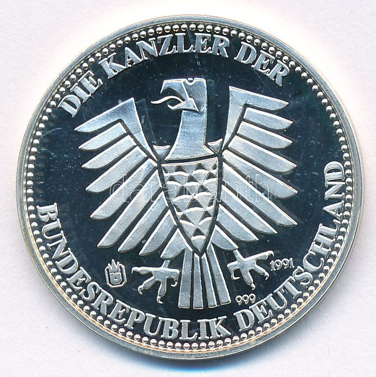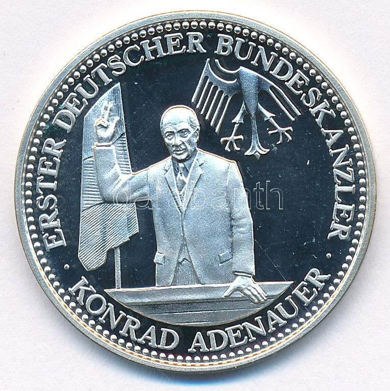 Németország 1991. "Konrad Adenauer - Erster Deutscher Bundeskanzler / Die Kanzler der Bundesrepublik Deutschland" jelzett Ag emlékérem (8,36g/0.999/31mm) T:UNC (eredetileg PP)