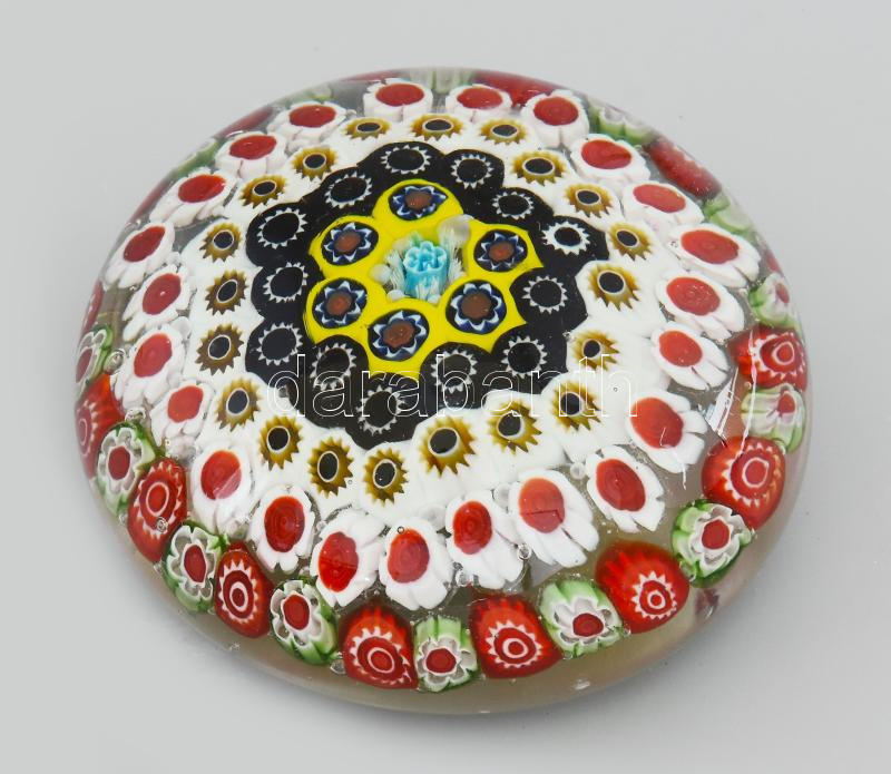 Murano millefiori üveg levélnehezék, jelzés nélkül, hibátlan, d: 10 cm https://www.darabanth.com/de/471-Fernauktion/471.0/Porzellan-Keramik-Glass/Glaser~500007/Murano-millefiori-uveg-levelnehezek-jelzes-nelkul-hibatlan-d-10-cm~II3152920
