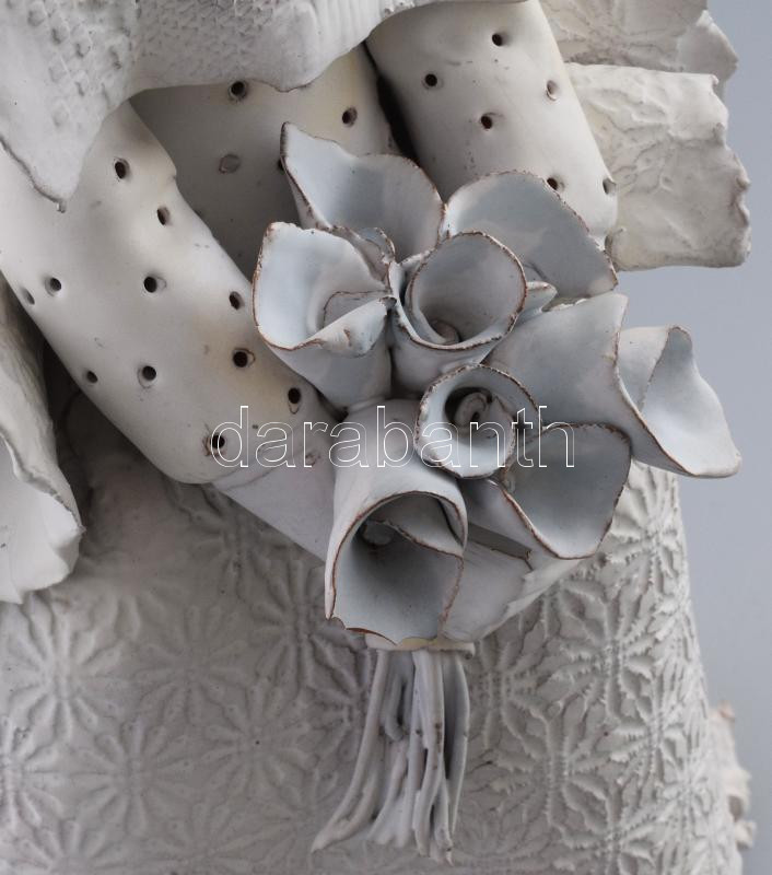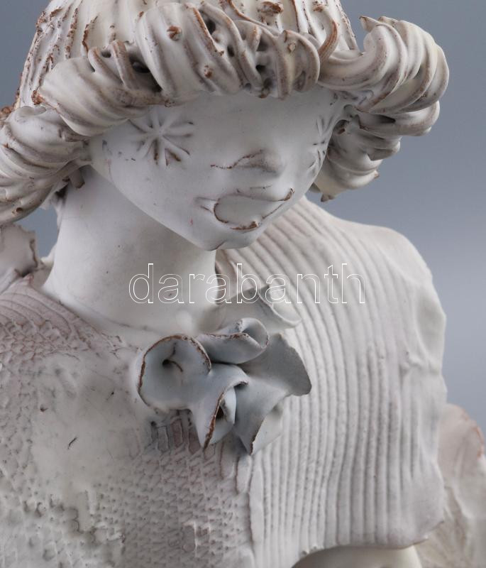 Kovács Éva (1938-): Nagyméretű kislány virágcsokorral. Jelzett, sérülésekkel, m: 46 cm /// KIZÁRÓLAG SZEMÉLYES ÁTVÉTEL, NEM POSTÁZZUK / ONLY PERSONAL COLLECTION IN OUR OFFICE!