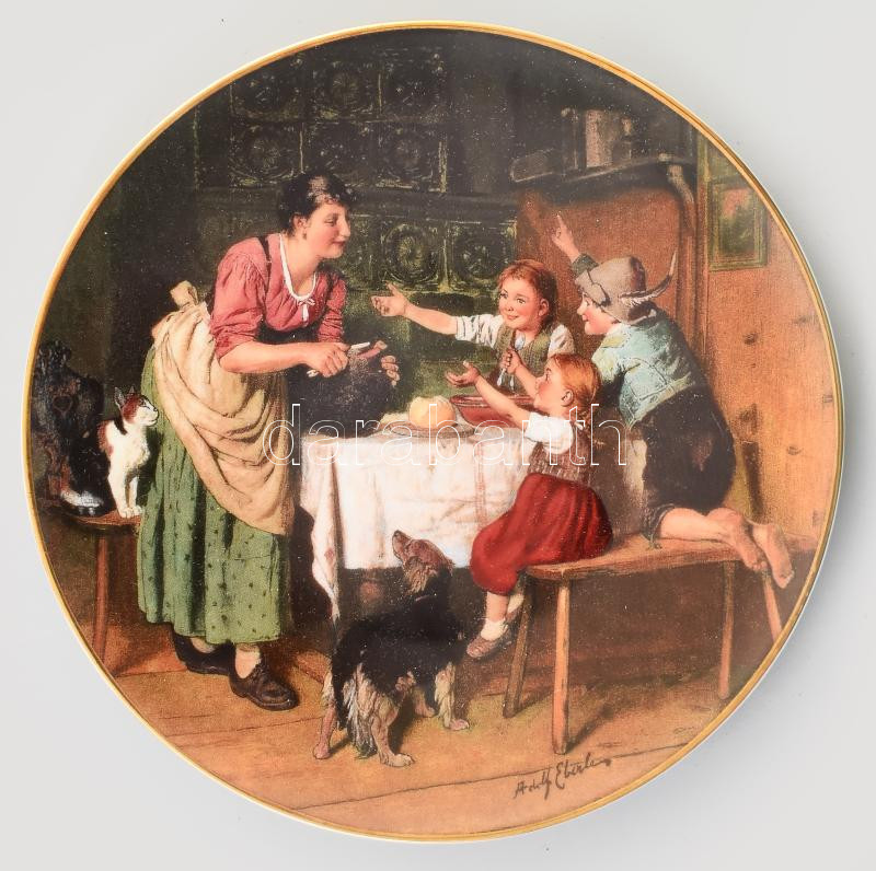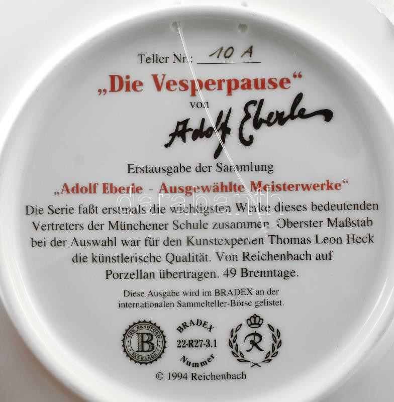 Beschreibung: 1994, Reichenbach dísztál, "Uzsonnaszünet", jelzett, sorszámozott, hibátlan, d: 19 cm