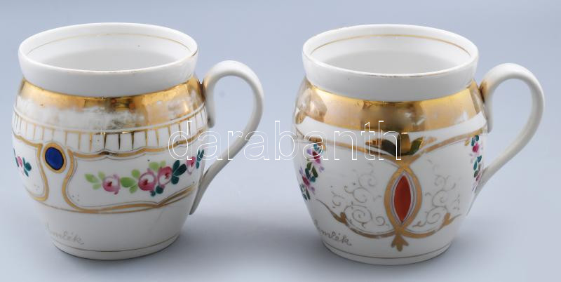 Beschreibung: 2 darab Püspökfürdői emlék porcelán csupor, kopással, repedésvonallal, m: 14 cm