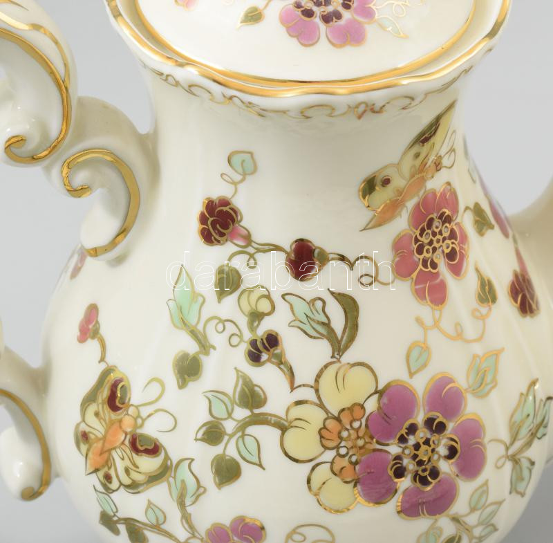 Beschreibung: Zsolnay pillangó mintás mokkás készlet. Hat személyes. Kézzel festett, jelzett, hibátlan