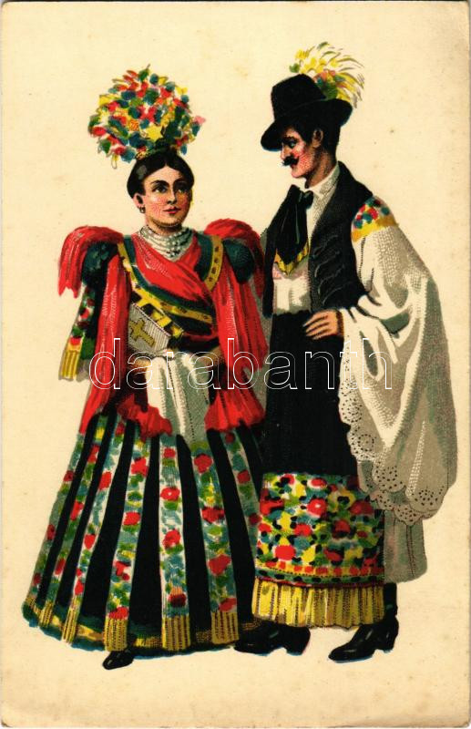Mezőkövesdi népviselet, fiatal matyó házaspár, magyar folklór / Hungar... https://www.darabanth.com/de/472-Fernauktion/472.0/Ansichtskarten/Folklore~1500032/Mezokovesdi-nepviselet-fiatal-matyo-hazaspar-magyar-folklor-Hungarian-folklore~II3194950