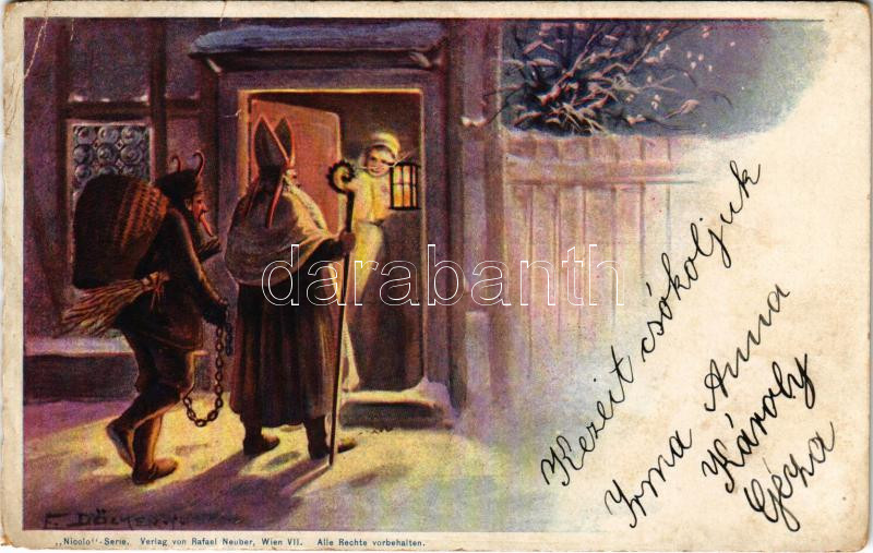 1899 (Vorläufer) Mikulás és Krampusz / Saint Nicholas and Krampus. Nic... https://www.darabanth.com/de/472-Fernauktion/472.0/Ansichtskarten/Krampus~1500059/1899-Vorlaufer-Mikulas-es-Krampusz-Saint-Nicholas-and-Krampus-Nicolo-Serie-von-Rafael-Neuber~II3193814