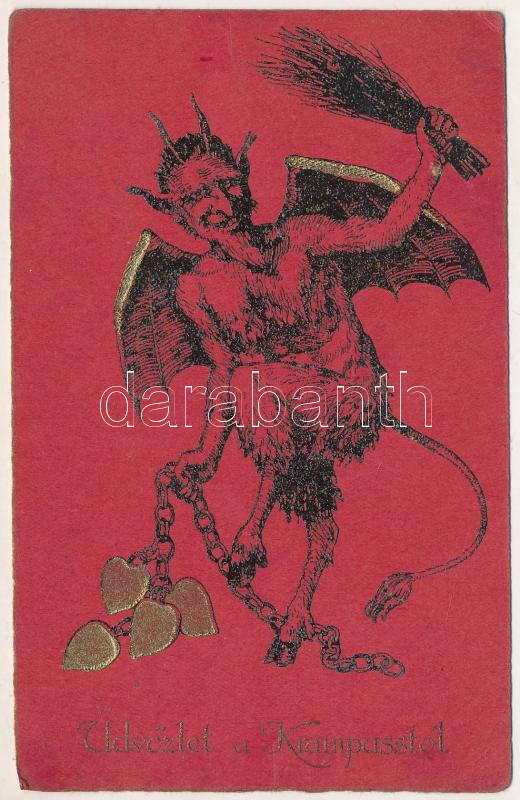 Krampusz - dombornyomott üdvözlet / Krampus - embossed greeting (fl) https://www.darabanth.com/de/472-Fernauktion/472.0/Ansichtskarten/Krampus~1500059/Krampusz-dombornyomott-udvozlet-Krampus-embossed-greeting-fl~II3199300