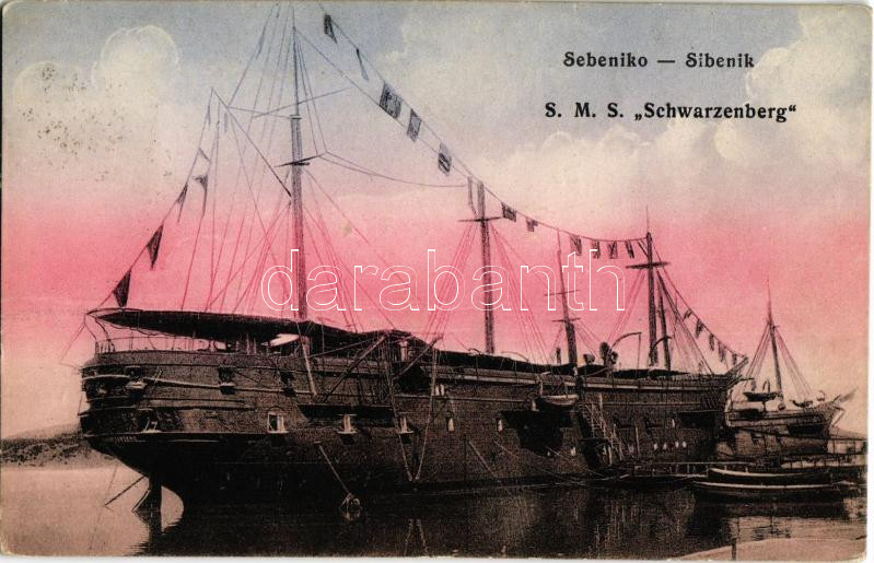1914 Sibenik, Sebeniko; K.u.K. Kriegsmarine SMS Schwarzenberg (Laudon)... https://www.darabanth.com/de/472-Fernauktion/472.0/Ansichtskarten/Kriegsschiffe~1500037/1914-Sibenik-Sebeniko-KuK-Kriegsmarine-SMS-Schwarzenberg-Laudon-Cs-es-kiralyi-haditenger~II2977859