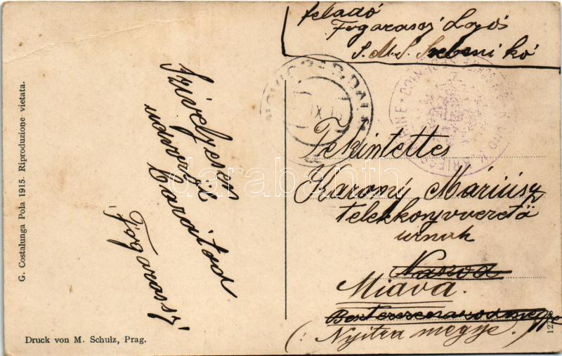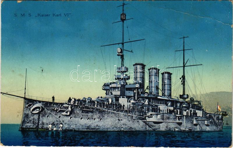 1916 SMS Kaiser Karl VI. K.u.K. Kriegsmarine / SMS Kaiser Karl VI. az Osztrák-Magyar Haditengerészet VI. Károly-osztályú páncélos cirkálója / WWI Austro-Hungarian Navy SMS Kaiser Karl VI armored cruiser. Druck von M. Schulz. G. Costalunga Pola 1915. + "K.U.K. KRIEGSMARINE SMS SEBENICO" (fa)