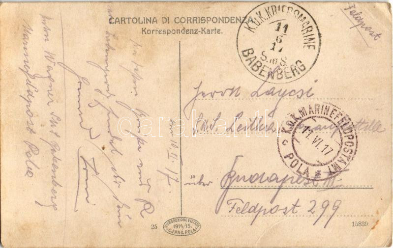 1917 Buzgó szolgálat / In contravvenzione / K.u.K. Kriegsmarine Matros... https://www.darabanth.com/de/472-Fernauktion/472.0/Ansichtskarten/Kriegsschiffe~1500037/1917-Buzgo-szolgalat-In-contravvenzione-KuK-Kriegsmarine-Matrosen-Austro-Hungarian-Navy-m~II3132364