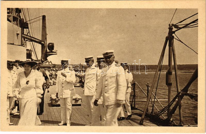 SMS Viribus Unitis az Osztrák-Magyar Haditengerészet Tegetthoff-osztályú csatahajó fedélzete Zita királyné látogatásakor / K.u.K. Kriegsmarine. Phot. A. Hauger Pola 1916. Rotes Kreuz Nr. 1049. Besuch / Austro-Hungarian Navy Tegetthoff-class battleship, visit of Zita of Bourbon-Parma (EK)