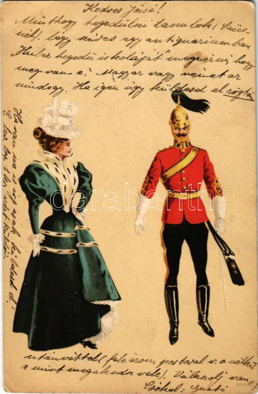 1900 Német katonatiszt és hölgy / German military officer and lady. li... https://www.darabanth.com/de/472-Fernauktion/472.0/Ansichtskarten/Militaria~1500057/1900-Nemet-katonatiszt-es-holgy-German-military-officer-and-lady-litho-EK~II3195523